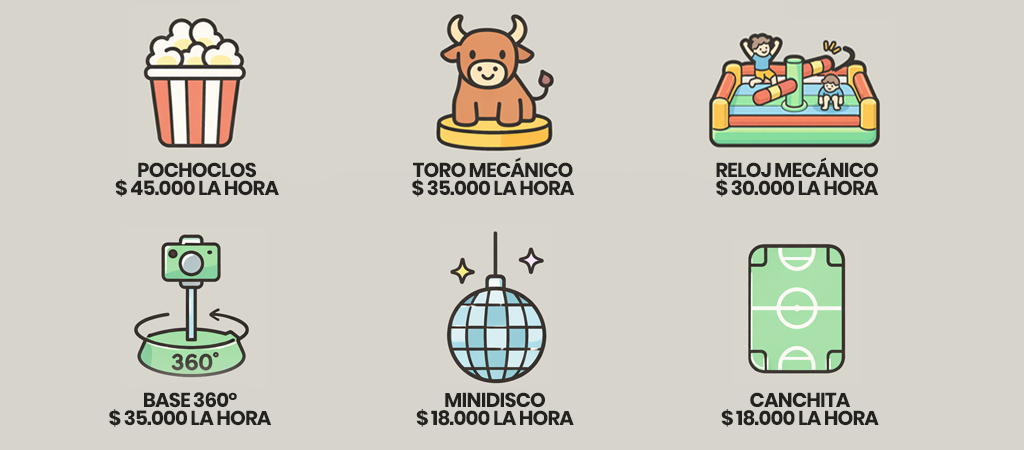 No incluye descartables Servicio SIN inflables incluidos